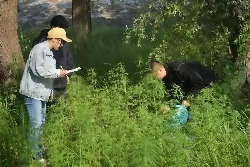 就在大家正专注于考察常见的水生植物时,有一株长在河滩旁土壤里是的一株草本植物,引起了一名团队队员的注意。